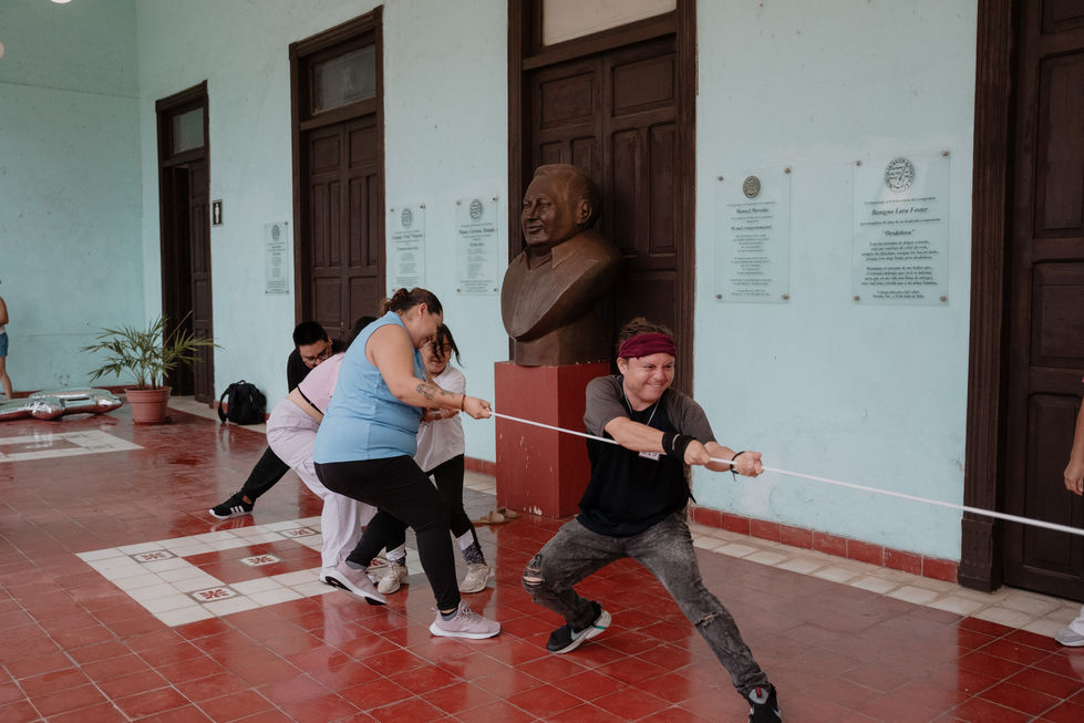 Una colección curada de fotografías del evento de Squid Game realizado en el Museo de la Canción Yucateca.